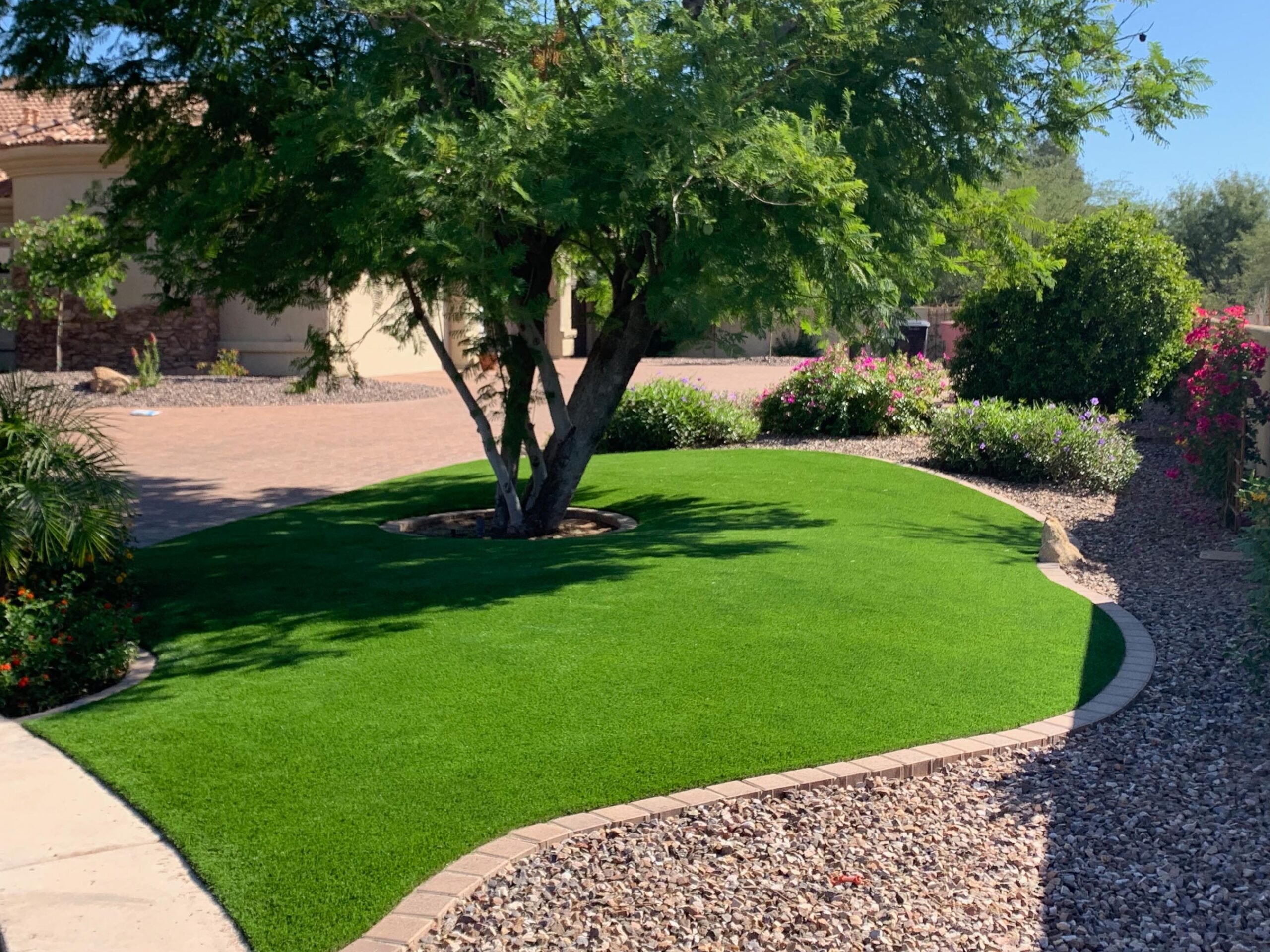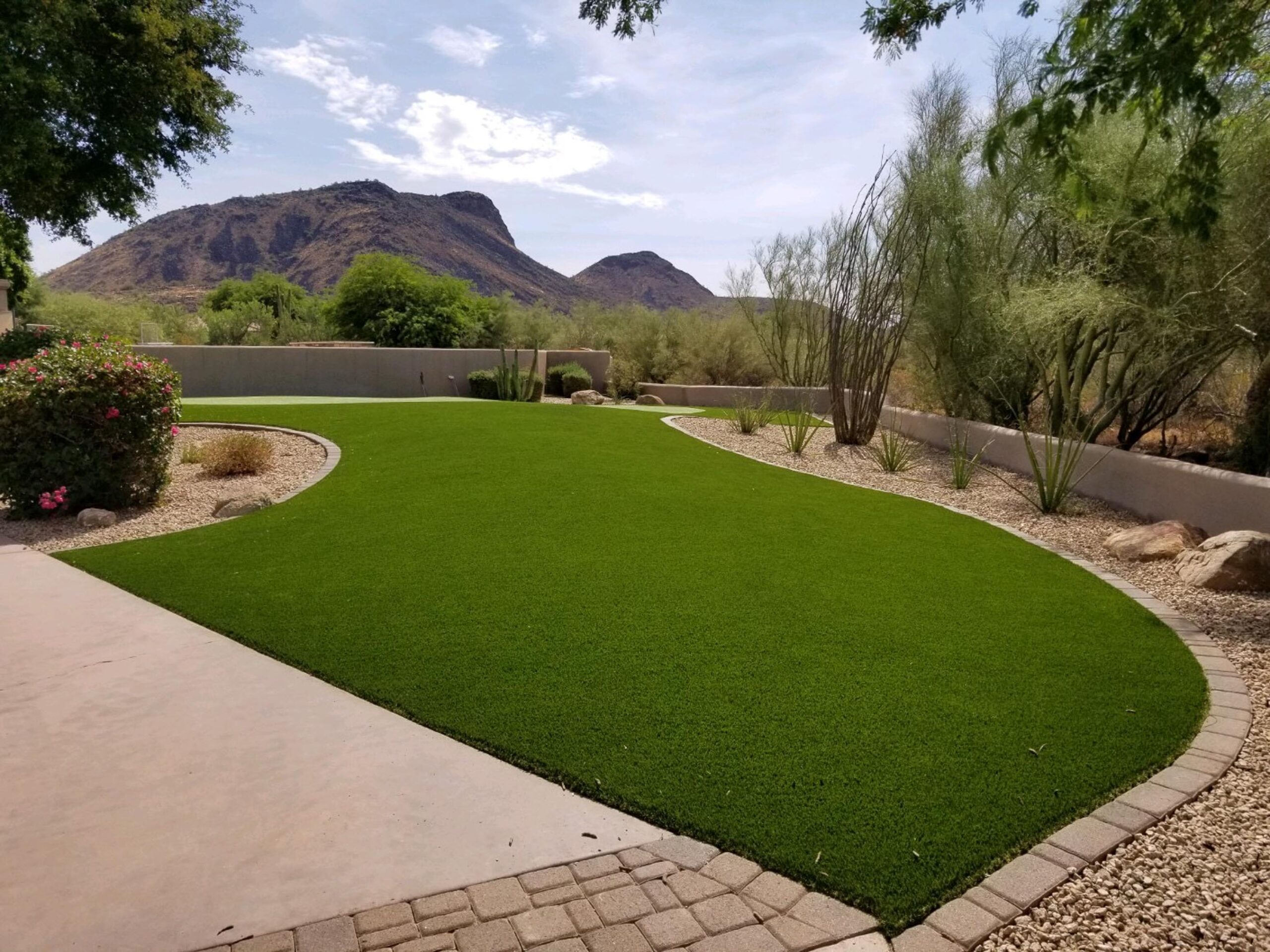 If you’re looking for a yard that looks beautiful and stays lush and green year round with no added work and expense of maintaining real grass, look no further than Celebrity Greens® artificial grass. Our synthetic grass does not require watering or the tedious weekly maintenance of real grass. It will enhance the value of your property, and does not look cheap or fake. You will feel confident in knowing that it will look as close to real grass as you can get. Celebrity Greens uses the finest synthetic turf, along with our unique installation and construction techniques, to give you a quality synthetic lawn that you will proud of.