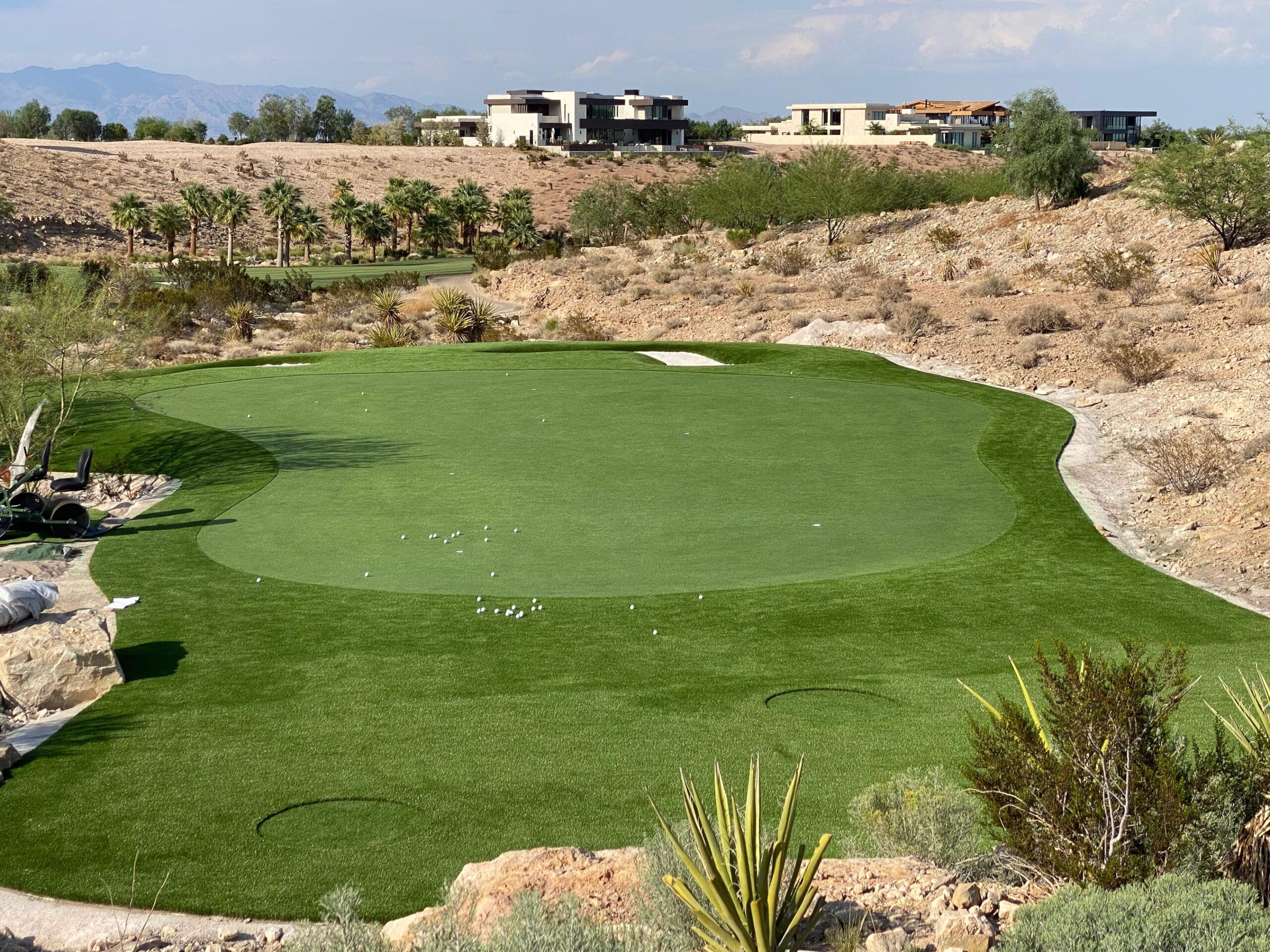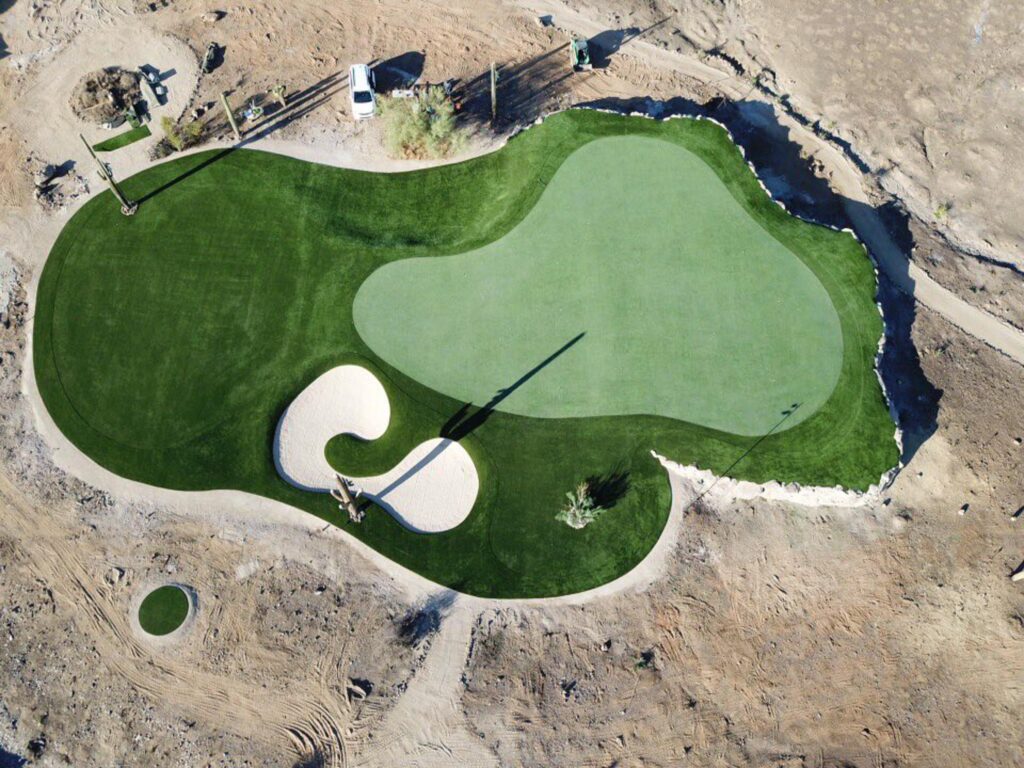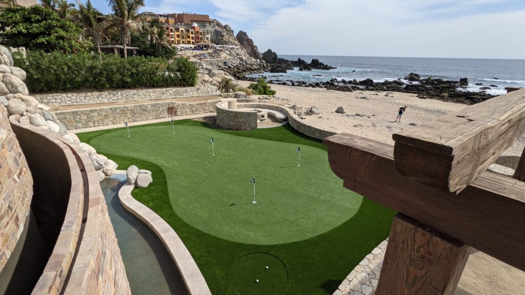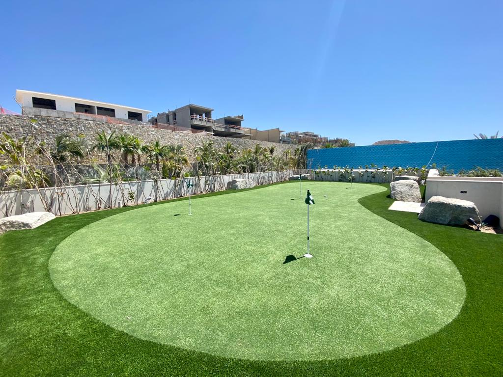 Nos especializamos en instalar un putting green de lujo o un amplio complejo de golf en su residencia privada o cada de vacaciones. Nuestro especialista de golf ira a su propiedad para una consulta gratuita. Podemos evaluar su propiedad y darle nuestra recomendación, escuchando atentamente su deseo de nivel de juego, características y sus deseos generales. Un putting green de césped sintético requiere muy poco mantenimiento y le ahorrara miles de dólares en el proceso. A diferencia de una instalación con césped natural, no requerirá un tedioso mantenimiento, ni riegos semanales, lo que le ahorrará dinero y tiempo de mantenimiento.